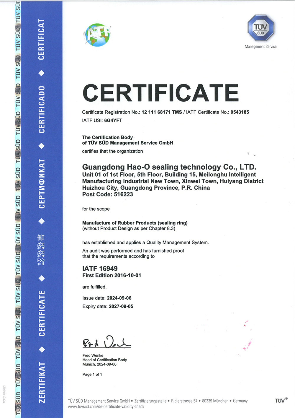 HaO Seal Technology Co., Ltd., gegründet 2010, entwickelt sich zu einem weltweit führenden Anbieter von Gummidichtungen und -lösungen. Das Unternehmen wurde von einem Expertenteam mit langjähriger Erfahrung in Forschung, Entwicklung und Fertigung von Gummidichtungen aller Art gegründet. Wir sind spezialisiert auf fortschrittliche Anlagen und Lösungen für die Bereiche Photovoltaik, Halbleiter, Tintenstrahl-Markiertechnik, Automobilindustrie und Elektrofahrzeuge, Hydraulik und Pneumatik sowie Medizin und Gesundheitswesen.