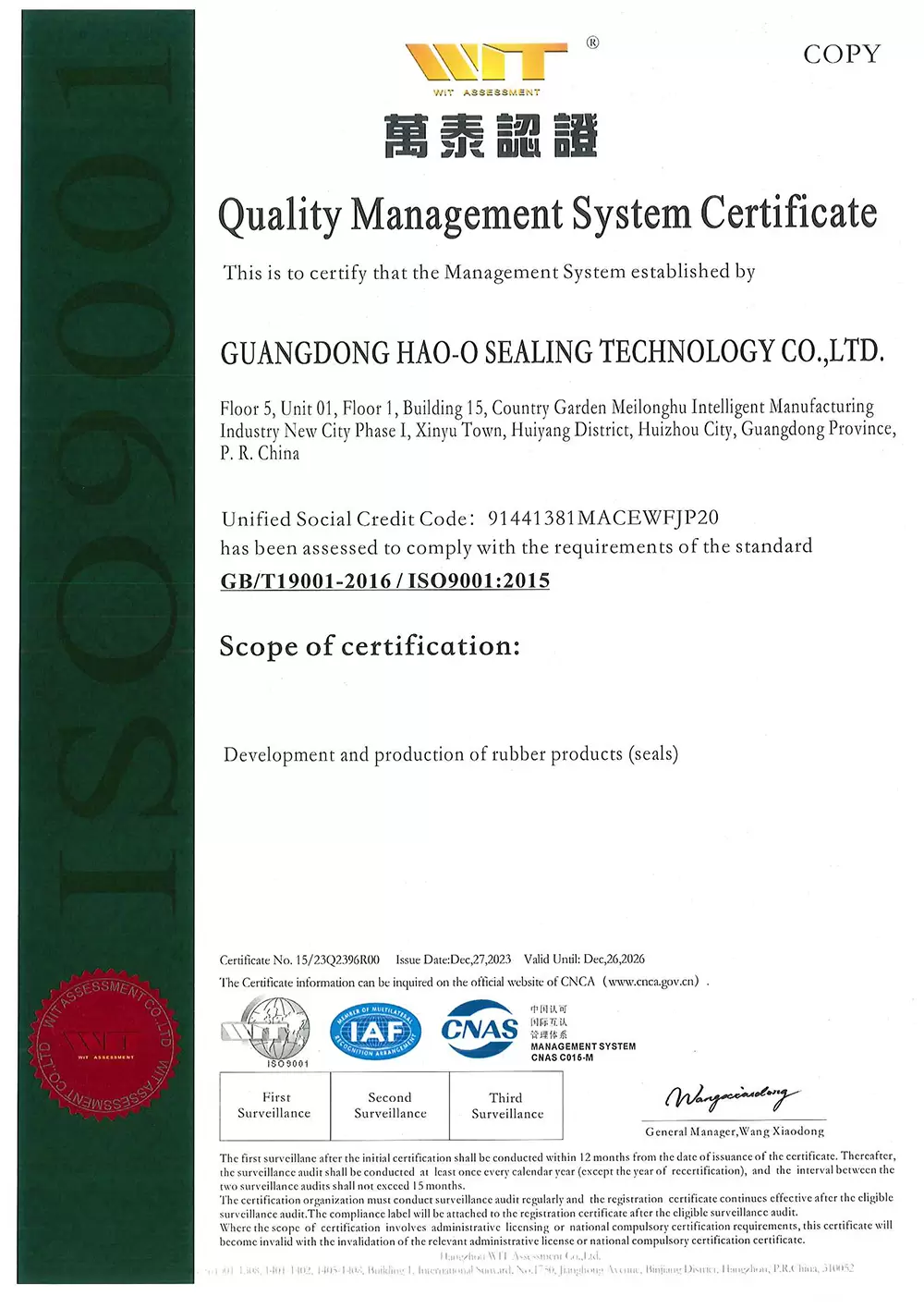 HaO Seal Technology Co., Ltd. verfügt über ein Forschungs- und Entwicklungszentrum, das kontinuierlich an der Verbesserung unserer Produktionslinien arbeitet. Wir streben danach, unseren Kunden auf Basis neuester Technologien, Expertise und Leidenschaft einen zufriedenstellenden Service zu bieten.