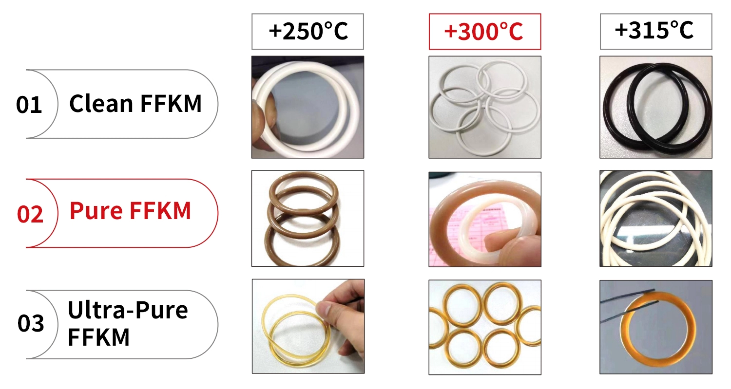 3. Geringe Ausgasung und hohe Reinheit: FFKM-Materialien zeichnen sich durch ihre geringe Ausgasung aus, was in der Halbleiterfertigung von entscheidender Bedeutung ist, da selbst kleinste Verunreinigungen eine Chipcharge unbrauchbar machen können. Zudem gewährleisten sie einen hohen Reinheitsgrad und minimieren so das Risiko, Verunreinigungen in empfindliche Prozesse einzubringen.
